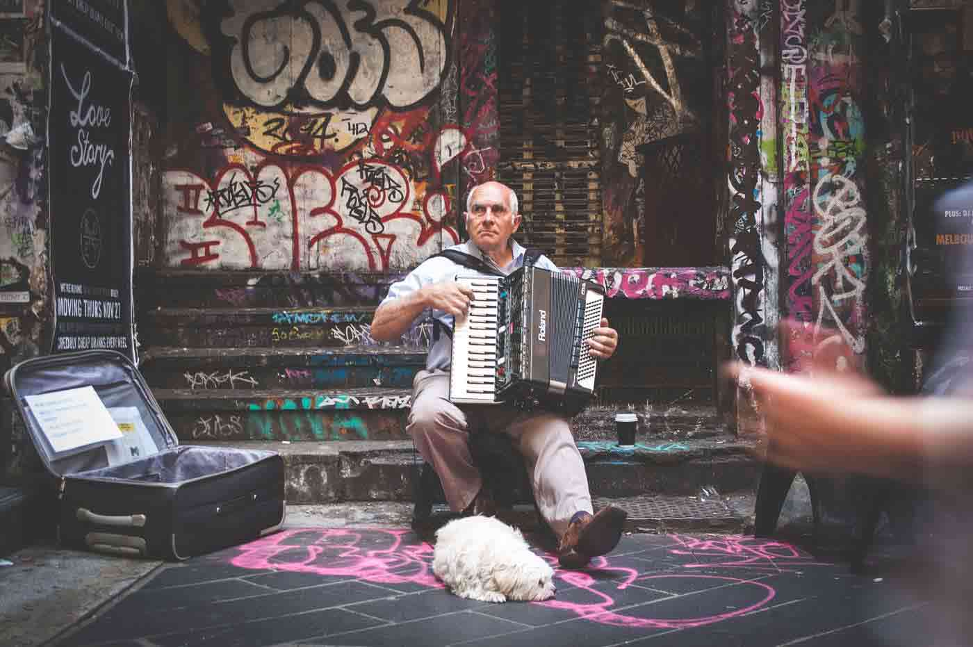 Street Music: Old Man Play Accordion In The Brooklyn, New York City